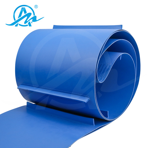 Yassı bantlı taşıyıcı Pvc konveyör bant kumaş mavi Pvc gökyüzü mavi dikey şerit mavi konveyör bant